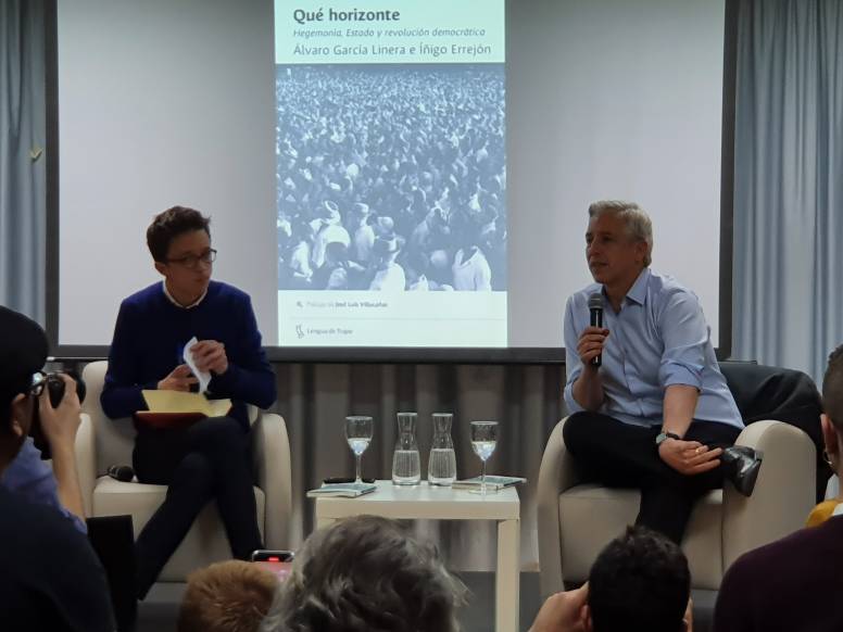 El exvicepresidente de Bolivia, Álvaro García Linera, estuvo en el Círculo de Bellas Artes de Madrid presentando el libro QUÉ HORIZONTE, escrito conjuntamente con el diputado español Íñigo Errejón. Aunque dieron una visión general del libro con temas como “La efectividad del discurso” o “La división de los de arriba”, el tema central fue otro de palpitante actualidad: ¿Cómo hacer que los logros económicos, políticos, sociales y culturales de gobiernos progresistas perduren en el tiempo cuando estos llegan a su fin, ya sea por una pérdida electoral, un Golpe de Estado u otras circunstancias adversas que permiten la vuelta al poder de sectores conservadores? Pero sobre todo, se habló del último capítulo, que no aparece en el libro, y que son las conclusiones teóricas de García Lineras después del Golpe de Estado perpetrado en Bolivia el 10 de noviembre pasado contra el gobierno de Evo Morales, del cual el intelectual boliviano fue su vicepresidente durante 14 años.