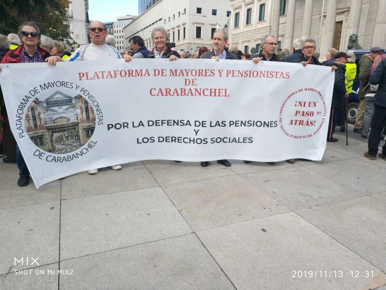 ·Varias Compañeras y compañeros de la Plataforma de Mayores y Pensionistas de Carabanchel, asistieron el miércoles día trece,a las doce horas a la plaza de las Cortes frente al Congreso de los Diputados, convocados por la COESPE.