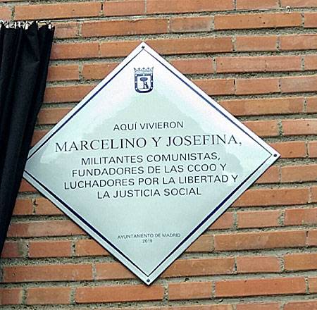 “Aquí vivieron Marcelino y Josefina militantes comunistas, fundadores de las CCOO y luchadores por la libertad y la justicia social”