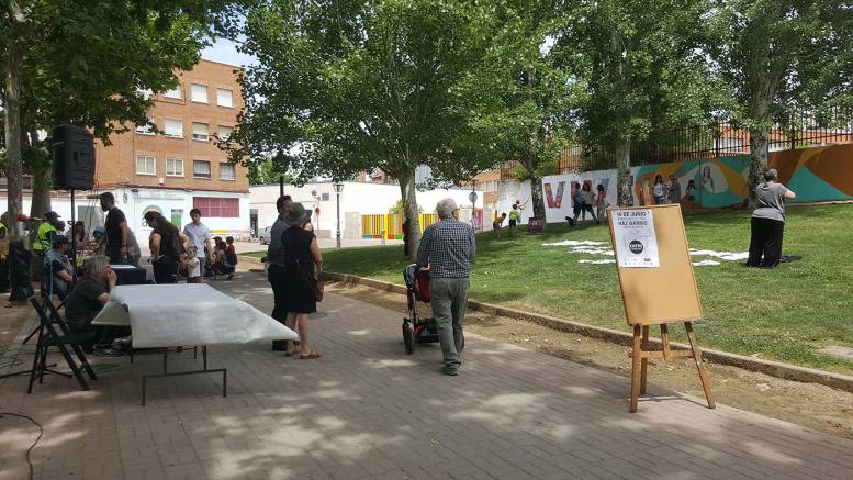 Ademas los/as alumnos/as del colegio pudieron colaborar pintando parte del muro. Así como de un taller de pintura de camisetas. Por último para finalizar disfrutamos de un estupendo concierto de “Rock Carabanchelero” a cargo de “Jose insaciable” y su banda, mientras disfrutamos de la clásica limonada vecinal.