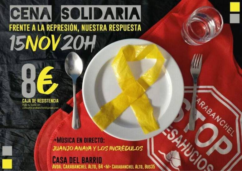 20:00h Cena Solidaria: "Frente a la represión, nuestra respuesta"