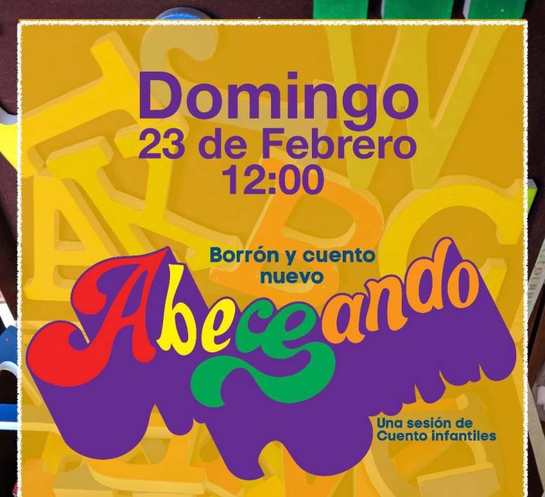 Nos hemos propuesto ir a la base de las historias y "abecear" juntos en una sesión dominada por el abecedario. Ven este domingo y podrás sumergirte en el abecedario con Borrón y Cuento Nuevo jugando en grupo con las letras. Cuentos que no empiezan por la A ni terminan por la Z.