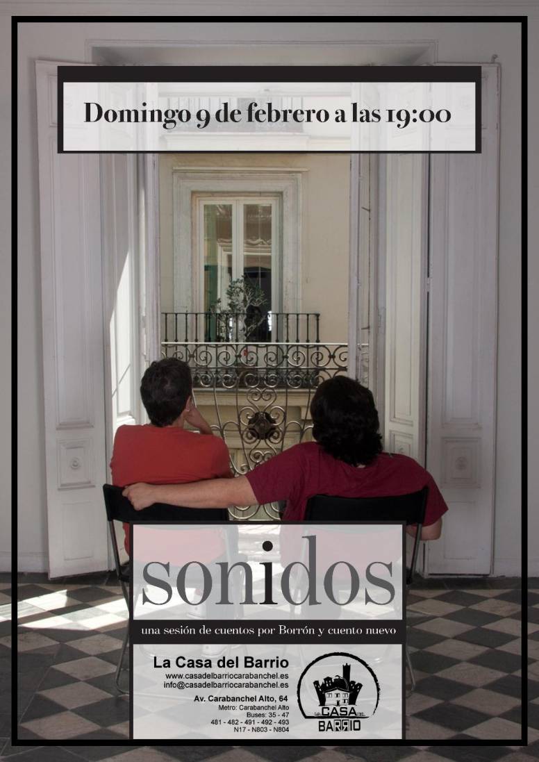Una hora de cuentos para adultos inspiradas en sonidos cotidianos, cercanos y estremecedores, contados por Borrón y cuento nuevo (Nieves Pérez y Dani Borrón).