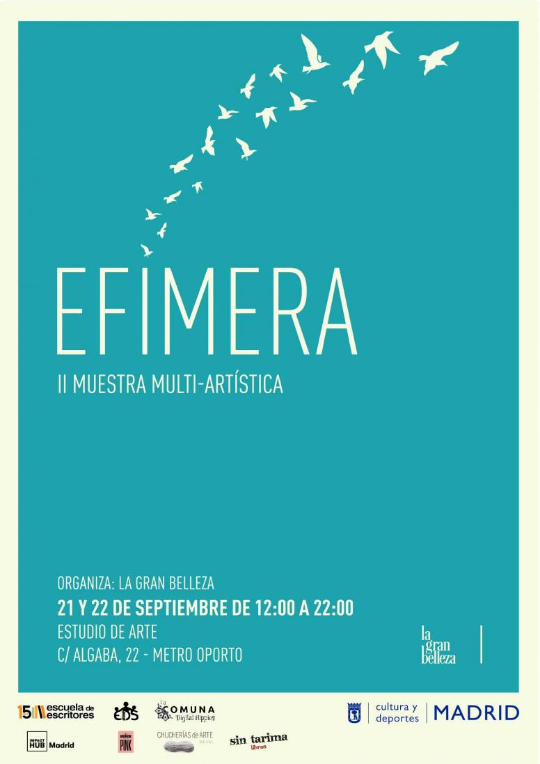 https://lagranbelleza.es/wp-content/uploads/2019/09/programa_EF2b.pdf·EFÍMERA es la muestra multi-artística que La gran belleza organiza con el apoyo del Ayuntamiento de Madrid. Hemos preparado un programa multi-artístico de gran calidad artística para los días 21 y 22 de septiembre que versará sobre el tema de la memoria, coincidiendo con la publicación del número 7 de la revista en la que participan 24 artistas. En este número contamos como invitados de honor con Sabina Urraca, Enrique Páez, Inés Mendoza e Irene Vallejo.
