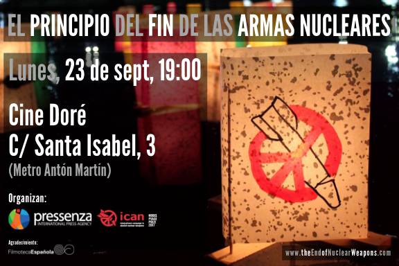 La proyección está organizada por ICAN (premio Nobel de la Paz 2017) y Pressenza (miembro de ICAN y productora de la película).