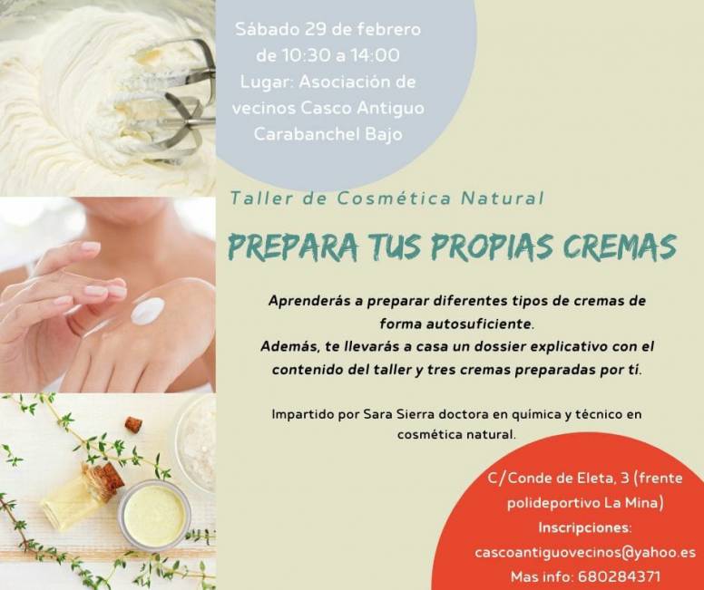 Además, te llevarás a casa un dossier explicativo con el contenido del taller y 3 cremas preparadas por tí.