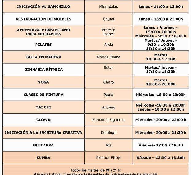 Y estos son los Talleres Semanales de La Casa del Barrio para este curso: