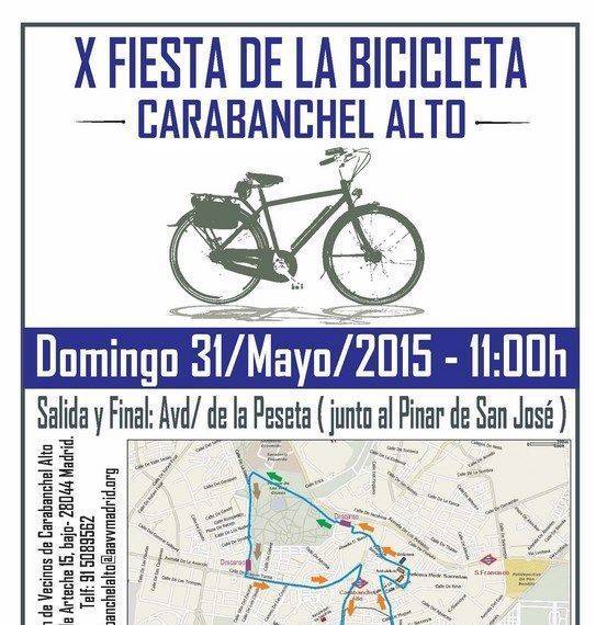 Ya está aquí de nuevo la que sin duda se ha convertido en una cita clásica para los amantes de la bici del Distrito. Nos referimos, claro, a la Fiesta de la Bicicleta de Carabanchel Alto, organizada por la asociación vecinal de este barrio, que alcanza ya su décima edición. Como sabéis, no es una carrera, sino una fiesta cuyo fin es “poder disfrutar por un día de los caminos, carriles-bici y calles de nuestro barrio, acompañados de más vecinos en bicicleta”, lo que desde luego es todo un gusto. Prueba de ello es el éxito creciente de esta convocatoria, que el año pasado, sin ir más lejos, lograba reunir a alrededor de un millar de participantes. Como verás, no te la puedes perder: todos los ciclistas del barrio y muchos de fuera estarán allí. Al finalizar el recorrido, la organización obsequiará a los participantes con un refresco para estar bien hidratados. Cuándo: 31 de mayo, a las 11:00. Dónde: salida y final en la avenida de la Peseta, junto al pinar de San José.Mayo en El Trotajueves