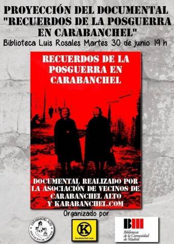 19:00. Proyección del documental Recuerdos de la posguerra en Carabanchel.