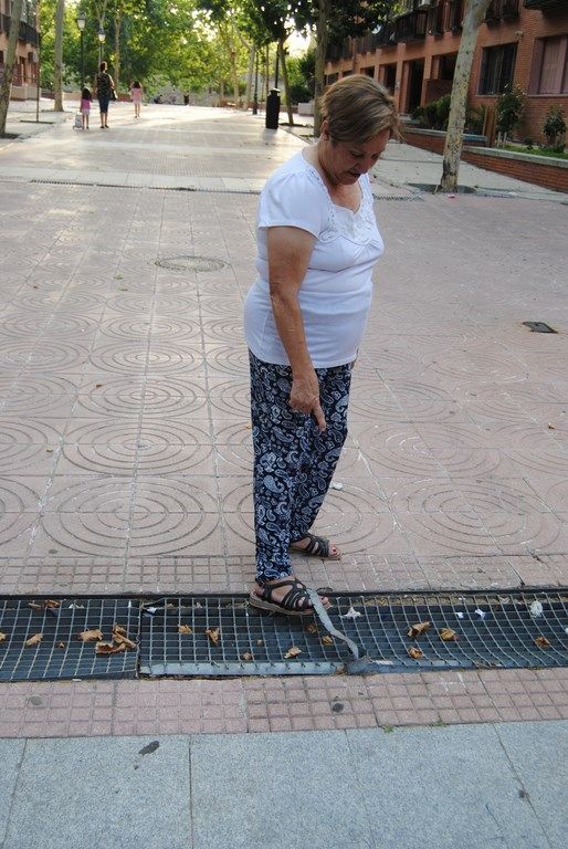Nos lo explica Carmen López, presidenta de la asociación vecinal: “en el bulevar, la gente va a la compra, juegan los niños, y desde hace ya varios años hay un deterioro en las rejillas, que están llenas de basura y rotas… La gente mayor se cae, los niños se caen, y ya llevamos tiempo denunciando esta situación y pidiendo que se arreglen, porque es muy peligroso para todos. Hemos presentado ya varios escritos con fotografías, explicando el deterioro, y ahora voy a presentar otro más junto a las firmas que han recogido los vecinos, que ya se han cansado de que no les hagan caso”. En esta ocasión acompañan al escrito que se va a presentar en la Junta Municipal 167 firmas de vecinos pidiendo el arreglo de las rejillas de cerramiento para el alcantarillado y 6 hojas con fotos para dar una idea de “la situación grave con la que convivimos todos los días en el barrio de Alto de San Isidro”.