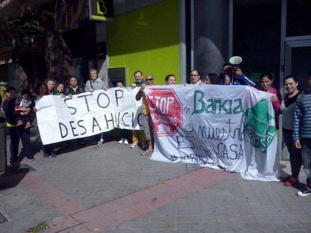 La lucha en Carabanchel en defensa del derecho a la vivienda no para: si ayer se evitaba un desahucio, hoy volvíamos a movilizarnos en defensa de nuestros vecinos. En esta ocasión, el 5 de mayo acudíamos a Bankia a solicitar la paralización de 2 desahucios. El de Alejandra y su familia y el de Víctor y Charo. Desde que empezó la crisis más de 600.000 familias han sido desahuciadas, y esas personas necesitan una solución habitacional. Necesitamos unirnos para defendernos de quienes nos arrebatan lo que necesitamos para vivir. Además, durante el tiempo que hemos estado en la calle megáfono en mano, 2 personas se nos han acercado a plantearnos que están también amenazadas de desahucio, y hemos contactado para que se organicen con nosotros. Nos querían en soledad y unidos nos encontrarán.
