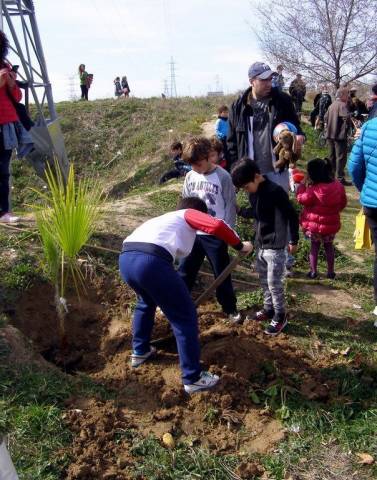 El acto estuvo organizado por la Comisión Vecinal Parque Manolito Gafotas de la A.V. Carabanchel Alto, con la colaboración de TREPA, al que también asistieron representantes de ARBA, Ecologistas en Acción, Salvemos Campamento y Salvemos la Casa de Campo, que contribuyeron con su apoyo solidario a esta iniciativa. Un año más, decenas de niños y mayores disfrutaron del célebre Romance del árbol, donde se hizo hincapié de forma didáctica y divertida en las virtudes del árbol y el máximo respeto que se merece. El caldito y el refresco los puso la asociación vecinal, y vinieron muy bien para reponer fuerzas después de plantar más de una veintena de árboles, la mayoría donados por la UFIL (Unidad de Formación e Inserción Laboral Puerta Bonita) y los propios vecinos asistentes. En esta ocasión se plantaron encinas, castaños de indias, arces, almeces, majuelos, aligustres, sauces, tilos y palmeras. Como fin de fiesta, se repuso el cartel de “Parque Manolito Gafotas”, de nuevo elaborado por los más pequeños, para sustituir el que ya existía, que desapareció misteriosamente hace unos meses.