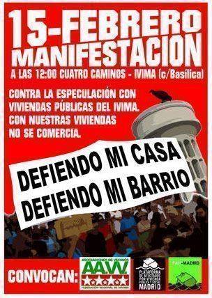 En una multitudinaria reunión celebrada el pasado 21 de enero en el Teatro del Barrio, los afectados acordaron convocar una manifestación para el próximo 15 de febrero que partirá a las 12:00 de Cuatro Caminos y finalizará ante la sede del IVIMA, en la calle Basílica.