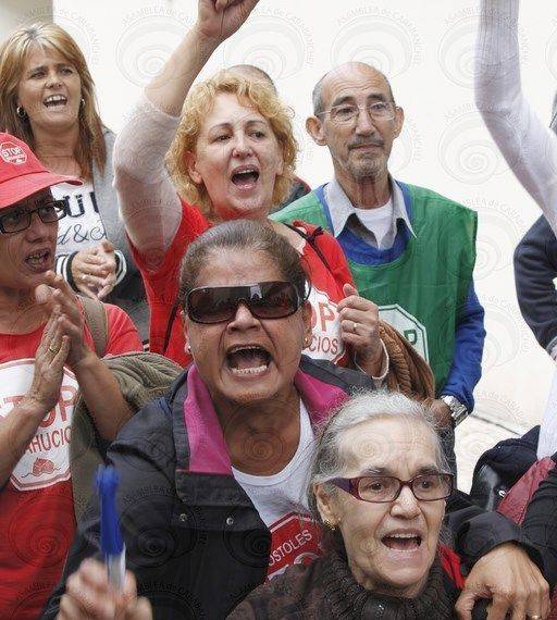 AP Carabanchel 15M[/caption]La mañana del 16 de octubre se conseguía parar durante un mes el desahucio de Julia y Paloma, madre e hija, sufriendo ambas graves problemas de salud. Julia tiene 80 años, padece cáncer, vive junto a su hija de 46 años y sufre una discapacidad. Viven en un piso de la EMVS que fue vendido, junto a otras 1.800 viviendas, a Fidere, la inmobiliaria del fondo buitre Blackstone. La pensión de 600 euros de Julia no alcanza para pagar los más de 500 euros de alquiler, y ya debe unos 7.000 euros a la inmobiliaria. Julia accedió a la vivienda protegida por sus problemas de salud, aunque hace un año pasó de ser una vivienda pública a ser un activo más de un fondo buitre con el que especular y enriquecerse.