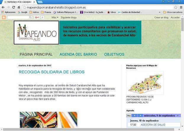 Es un blog dinámico, informativo, comunitario. Os invitamos a que le echéis un vistazo. En él aparecen todos los participantes del proyecto y la agenda mensual del barrio. Nos informa de todo lo que se hace en nuestro entorno, y a lo mejor consigue no solo informar, sino animar a participar, a ser parte del tejido que existe en las calles, a salir de casa y relacionarse y cuidarse… A lo mejor consigue que seamos entre todos un poquito más felices. “La felicidad podría ser uno de los mejores objetivos en salud”