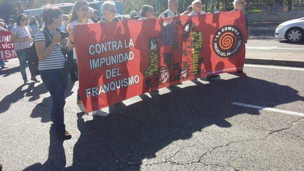 El pasado 26 de octubre, alrededor de medio millar de personas marcharon en el Distrito en recuerdo de las personas que sufrieron la represión franquista en la cárcel de Carabanchel y las que aún hoy la sufren en el Centro de Internamiento de Extranjeros que se alza en parte de su antiguo recinto. En este sentido, la larga lista de organizaciones y colectivos convocantes reclama el cierre del CIE y la creación de “un centro por la memoria que ofrezca el testimonio de lo ocurrido en estos terrenos”.La marcha partió a las doce del mediodía desde la altura del número 53 de la calle Eugenia de Montijo, donde se ubicaba la antigua cárcel de Santa Rita, lugar en el que se encontraban confinados los presos del bando perdedor de la Guerra Civil que entre 1940 y 1944 construyeron la cárcel de Carabanchel en régimen de trabajos forzados, edificio en el que luego muchos de ellos continuarían su reclusión. El itinerario de la manifestación pretendía seguir el que estos presos hacían diariamente para realizar dicha tarea. Un kilómetro escaso que la marcha recorrió a paso tranquilo, encabezada por una “cuerda de presos”, performance que perseguía simbolizar a estas víctimas de la represión a las que el acto rindió homenaje. Así, recorrimos la calle del General Ricardos hasta desembocar en la avenida de los Poblados, recta final de la marcha hasta llegar al CIE, donde nos fuimos concentrando y dio comienzo el acto final de la movilización poco antes de la una y media del mediodía.