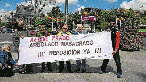 Miembros de la FRAVM, de Ecologistas en Acción y de otras organizaciones mostraron en la mañana del pasado 29 de abril su oposición a la tala de árboles que el ayuntamiento de la capital está llevando a cabo y volvieron a exigir la elaboración de un Plan Director del Arbolado que garantice el correcto cuidado y mantenimiento de los aproximadamente 400.000 ejemplares que hay en la ciudad.