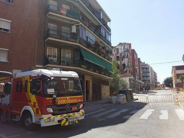 El edificio situado en la Calle Duquesa de Tamames, en el número 5, en el distrito de Carabanchel, se ha derrumbado esta mañana, a consecuencia al parecer, del colapso de unos pilares en un local comercial de planta baja. Afortunadamente, los bomberos habían desalojado previamente a todos los vecinos y no se han producido daños personales.