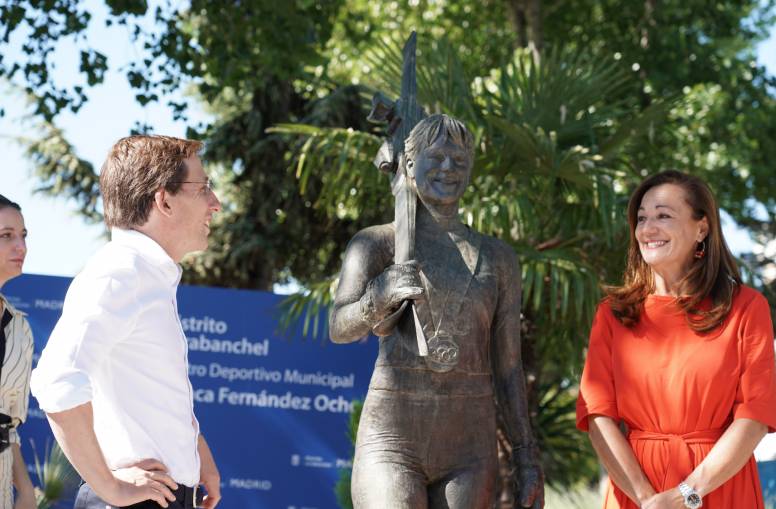 El alcalde de Madrid, José Luis Martínez-Almeida, acompañado por la delegada de Cultura, Turismo y Deporte, Andrea Levy; el concejal de Carabanchel, Álvaro González, y familiares de Blanca Fernández-Ochoa, descubrió este viernes una estatua en memoria de la esquiadora madrileña en el Centro Deportivo Municipal que lleva su nombre, en el distrito de Carabanchel, donde, durante años, residió junto a su familia. Un acto “de justicia humana”, según Almeida, para “honrar a una persona que paseó el mejor nombre de Madrid y de España por todos los lugares del mundo”.