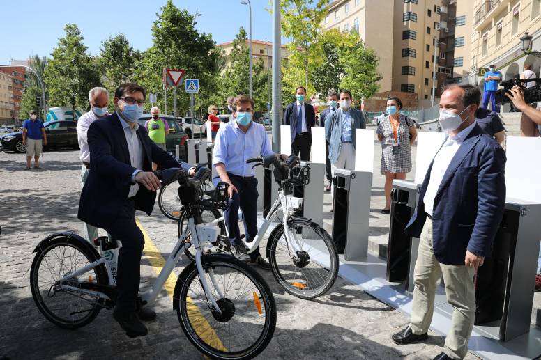 El alcalde de Madrid, José Luis Martínez-Almeida, acompañado del delegado de Medio Ambiente y Movilidad, Borja Carabante, el concejal de Carabanchel, Álvaro González, y el gerente de la Empresa Municipal de Transportes de Madrid (EMT), Alfonso Sánchez, ha inaugurado esta mañana la nueva estación de BiciMAD situada en la glorieta Marqués de Vadillo, 9.