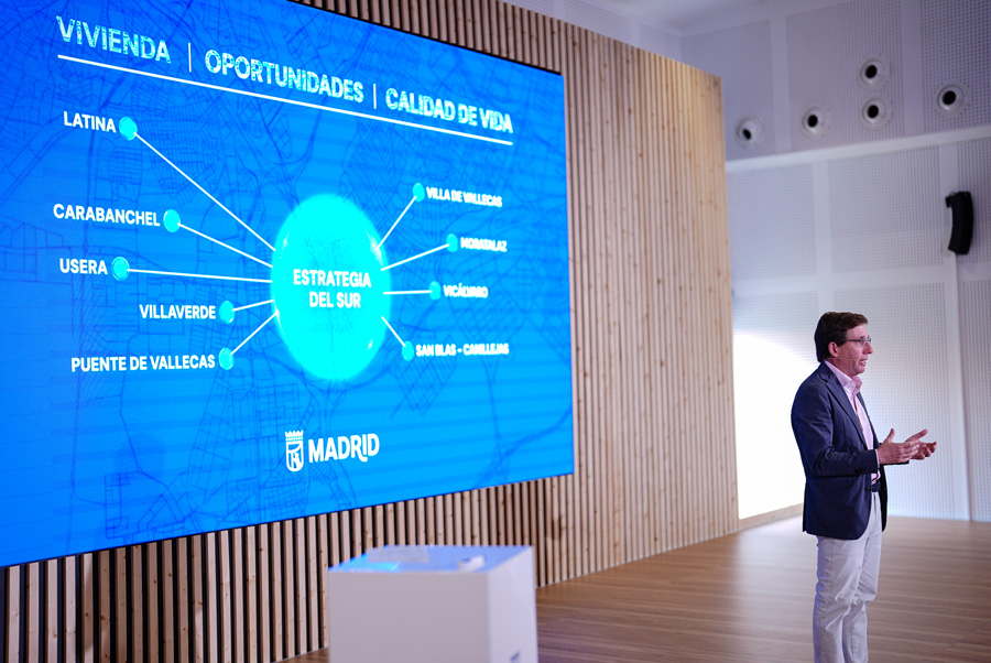 El alcalde de Madrid, José Luis Martínez-Almeida, ha presentado esta mañana la Estrategia del Sur, “una serie de actuaciones desde muy diversas perspectivas” orientadas a convertir a los distritos de Latina, Carabanchel, Usera, Villaverde, Puente de Vallecas, Villa de Vallecas, Moratalaz, Vicálvaro y San Blas-Canillejas en un motor de transformación urbana, económica y medioambiental para el conjunto de la ciudad.