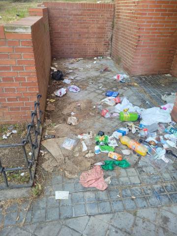 Preguntando al vecindario, una madre de la Asociación de Familiares de Alumnos del CEIP Lope de Vega, que vive en el Camino Alto, nos relata su viacrucis diario: “Cada día, para llegar al colegio, les repito a mis hijos que esquiven las cacas de perro, y después las latas de cerveza y las bolsas de basura. Al pasar junto a los contenedores nos esperamos a ver si vemos a la familia de ratas que se han instalado allí. Pongo quejas y reclamaciones por la aplicación de Madrid Móvil, pero no hay respuesta y al día siguiente volvemos a empezar. Las subcontratas de limpieza no se coordinan ni atienden las quejas, pero es que además el nivel de limpieza que tenemos asignado es claramente insuficiente para la densidad de personas que vivimos aquí. Durante las fiestas de San Isidro todavía quedó todo muchísimo peor, con personas de fuera del barrio que venían a nuestras calles a orinar por cualquier sitio y vandalizar el escaso mobiliario urbano que tenemos. Estuvimos sin refuerzo de limpieza durante casi un mes pese al uso intensivo”.