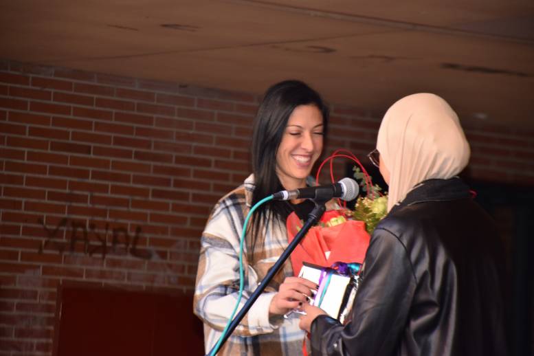 Como muestra de agradecimiento, la asociación le regaló un ramo de flores y una pulsera con la palabra “meraki”, concepto griego que significa “hacer algo con amor y con pasión”. Se lo entregó Zineb Haoufazane, también vecina del barrio y campeona, en este caso de España de Kickboxing Low Kick -56 kilos Profesional, a la que en su momento también entrevistamos en este periódico. Fue un acto bonito y emotivo, en el que se recordaron sus momentos en el barrio cuando jugaba al fútbol con sus amigos y multitud de anécdotas. A continuación vecinos y vecinas pequeñas y grandes le pidieron autógrafos y se hicieron fotos con ella, y para rematar estuvo un rato jugando al fútbol con la chavalería.