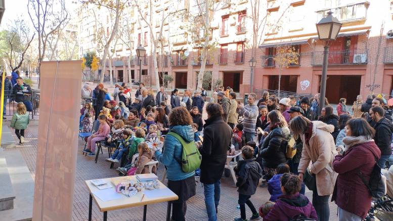 Tras la apertura, que tuvo lugar alrededor de las once y media de la mañana y estuvo animada con música, arrancó la programación con un taller de adornos navideños con materiales reciclados, dinamizado por el equipo del Centro Socio-Comunitario Caronte. A continuación, se realizó el homenaje a Jenni, a quien la asociación vecinal dedicó unas palabras de agradecimiento por estar allí —ahora vive en México, donde juega en el Tigres de la UANL Femenil—, y de reconocimiento por el logro cosechado, evocando cómo sus inicios en el “deporte rey” se gestaron en este barrio.