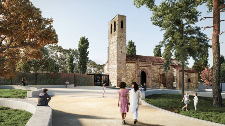 Para la red viaria se establecerán hasta siete secciones de calle diferentes, contando las aceras con franjas drenantes para la gestión de aguas pluviales. Las calzadas se ejecutarán a base de aglomerado asfáltico, diferenciando los aparcamientos con pavimento de adoquín. Asimismo, las aceras contarán con baldosa de terrazo granítico, a excepción del entorno de la ermita de Santa María la Antigua, declarada Bien de Interés Cultural, y de la zona de prospección arqueológica vinculada a la “traída de aguas” de origen romano, espacios que se pavimentarán con granito para potenciar y poner en valor la zona.