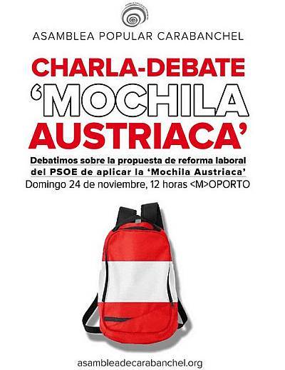 La Asamblea Popular de Carabanchel organiza para este domingo una charla-debate sobre la propuesta de reformar laboral de aplicar la Reforma Austriaca. Este encuentro tendrá lugar el domingo, 24 de noviembre, en la Plaza de Oporto a las 12:00.