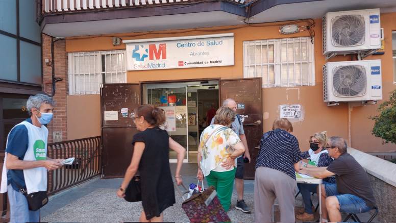 Vecinas y vecinos del barrio de Abrantes llevan ya cuatro años protestando por la falta de personal en el centro de salud. El Centro de Salud de Abrantes es el centro de referencia de más de 30 mil personas. Tendría que tener por ley al menos 17 médicos de familia. Sin embargo es un centro que ha llegado a estar sin ningún médico, que en la práctica apenas tiene en torno a la mitad de los médicos que plantea la ley. Eso hace que la demora para tener cita con el médico de cabecera pueda llegar a los dos meses.