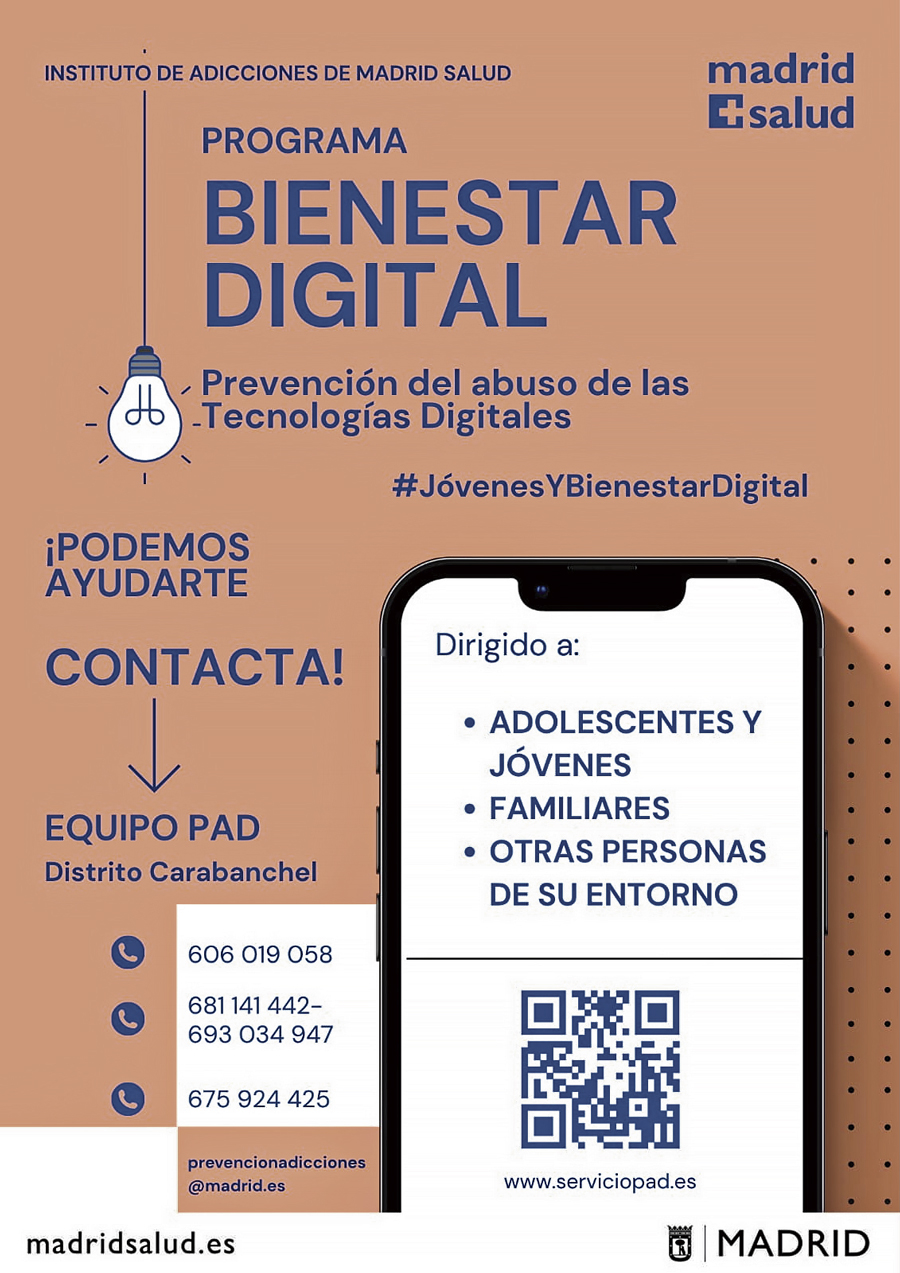 Contacta con nuestro equipo de Bienestar Digital y Prevención de Adicciones en el distrito de Carabanchel: