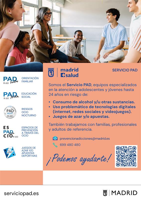 El objetivo es prevenir el uso abusivo de las tecnologías digitales y facilitar la detección temprana de posibles problemas para actuar lo antes posible y fomentar hábitos digitales saludables. El programa incluye sesiones informativas en centros culturales y educativos, además de guías prácticas con recomendaciones para madres y padres y un nuevo curso en la web www.serviciopad.es dirigido a estudiantes y profesionales que trabajen en la prevención y el tratamiento de adicciones con adolescentes y jóvenes.