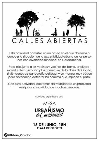 El próximo 16 de junio a las 17:00, la Mesa de Urbanismo del Foro Local de Carabanchel pone en marcha su primera iniciativa, Calles Abiertas, un estudio de la situación de la accesibilidad universal en el espacio público del Distrito.