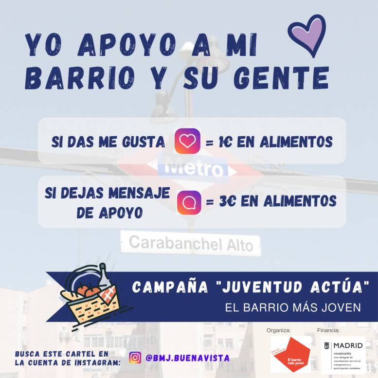 De ahí nació la campaña "Juventud Actúa", mediante la cual se alcanzó la cifra de 500 en productos alimenticios mediante un sencillo gesto como es hacer clic en un botón. La mecánica fue simple: mediante la cuenta de Instagram @bmj.buenavista, localizando el cartel de la campaña y dando clic en “me gusta”. Ese like se tradució en 1 en alimentos. Al escribir un mensaje de apoyo para las vecinas y vecinos del barrio, ese comentario se transformó en 3 en productos alimenticios.