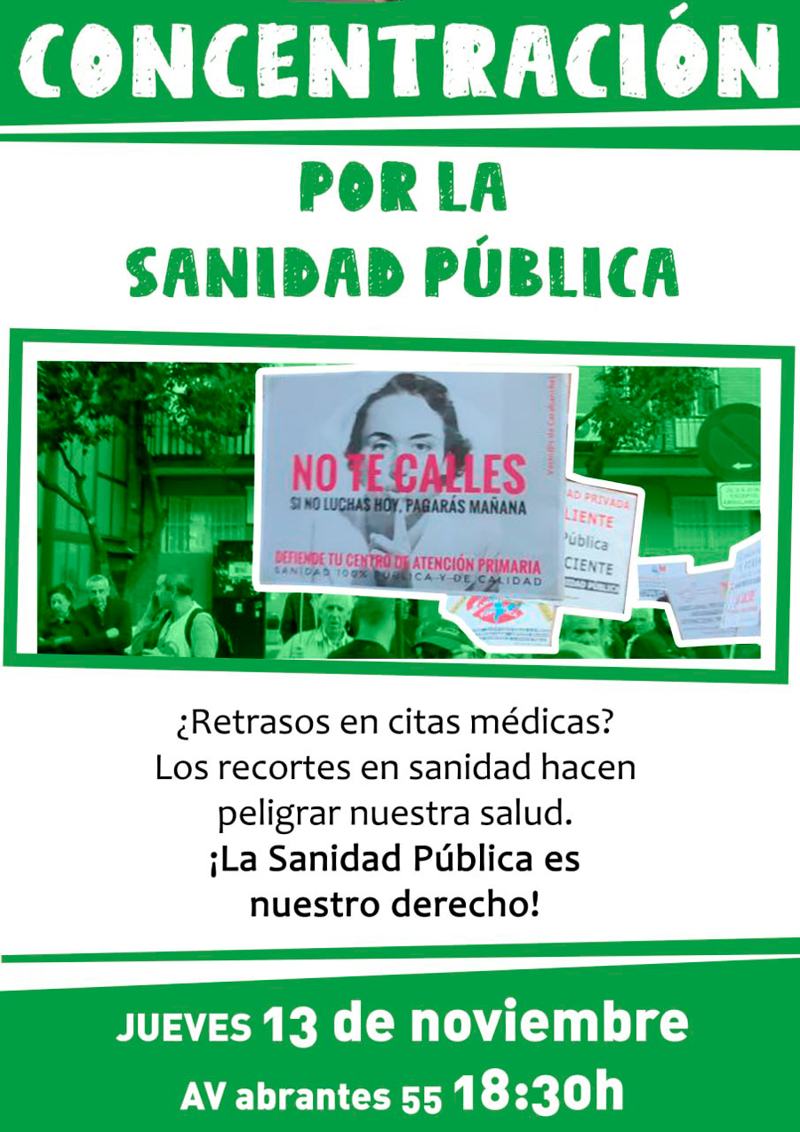 Concentración el jueves 13 de noviembre a las 18:30 ante el Centro de Salud Abrantes