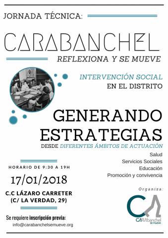 Buscamos métodos y estrategias que permitan mejorar los servicios del distrito, por lo que durante el año 2017 hemos considerado que es necesaria una reflexión, intercambio de información y trabajo conjunto que nos permita saber cuáles son las intervenciones sociales que se están realizando en el Distrito de Carabanchel y establecer de forma conjunta las acciones que nos permitan innovar y mejorar para ofrecer recursos más adaptados o un mayor refuerzo en las soluciones que se ofrezcan a la población.