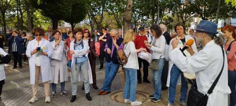 El sábado 15 de abril, aprovechando una tarde primaveral, nos reunimos en un nuevo acto de reivindicación y defensa de la sanidad pública. Para calentar motores, el evento se inició con una lectura dramatizada que expuso, en unas pinceladas, algunos de los problemas que acechan a la Atención Primaria y los servicios de Urgencias de nuestra comunidad.