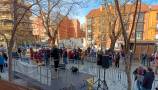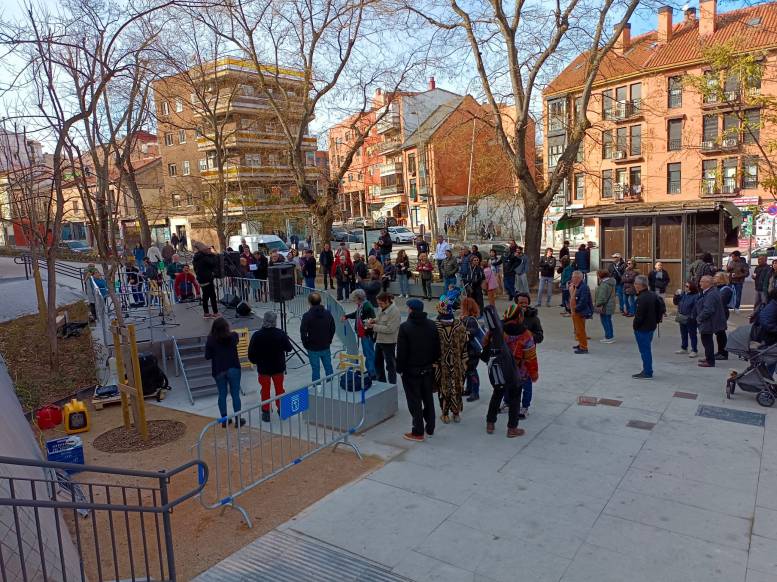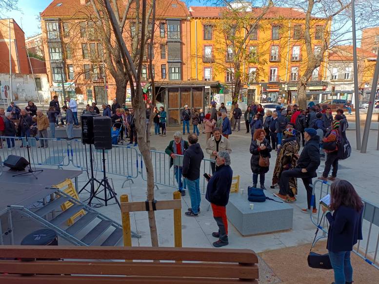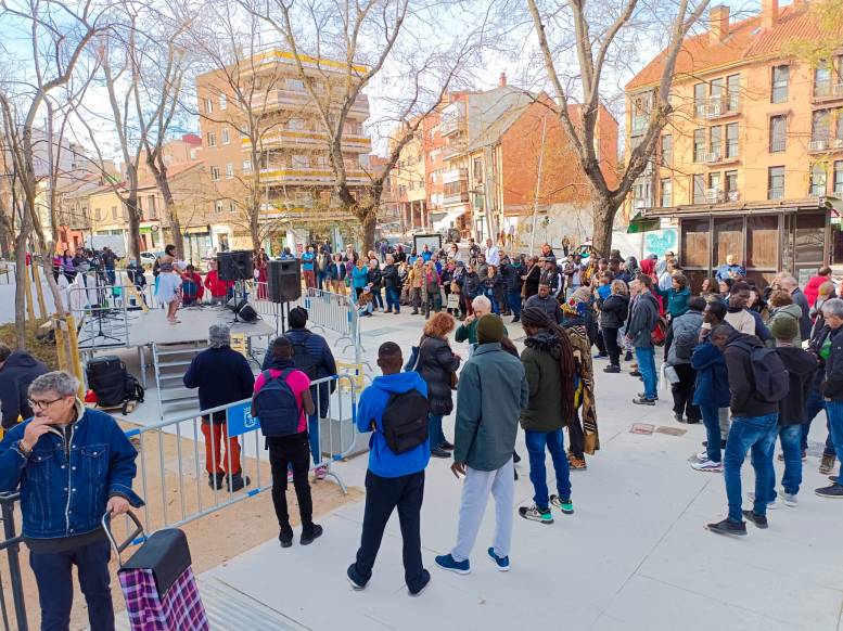 Numerosas vecinas y vecinos del barrio y de otros de Madrid se dieron cita, junto a varias decenas de personas que en estos momentos están alojadas en el Centro de Emergencia del Cuartel Arteaga, procedentes de Canarias, a cuyas costas llegaron desde diversos países africanos.