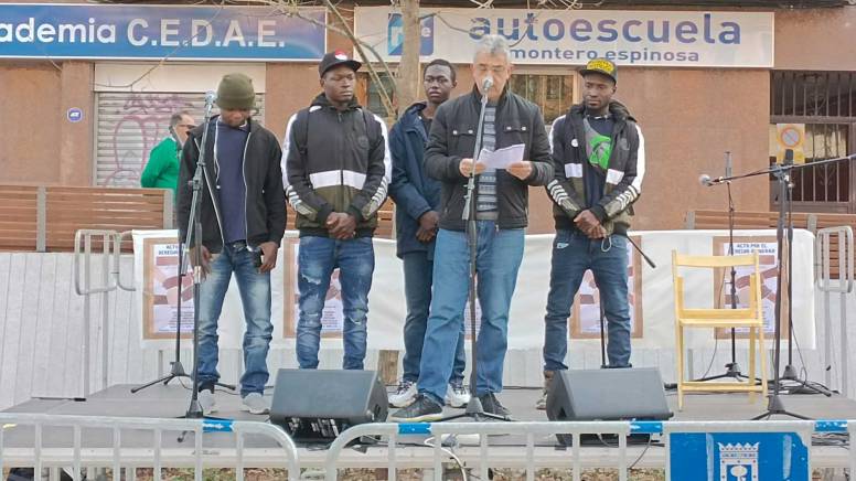“Con este acto, organizado por la Asociación de Vecinos de Carabanchel Alto y la Casa del Barrio de Carabanchel, con apoyo de colectivos como el Consejo de Salud y CEAR de Carabanchel, queremos recordar la Declaración Universal de los Derechos Humanos, aprobada hace 75 años, que en su artículo 13 proclama que ‘Toda persona tiene derecho a circular libremente y a elegir su residencia en el territorio de un Estado’ y ‘a salir de cualquier país, incluso del propio, y a regresar a su país’.