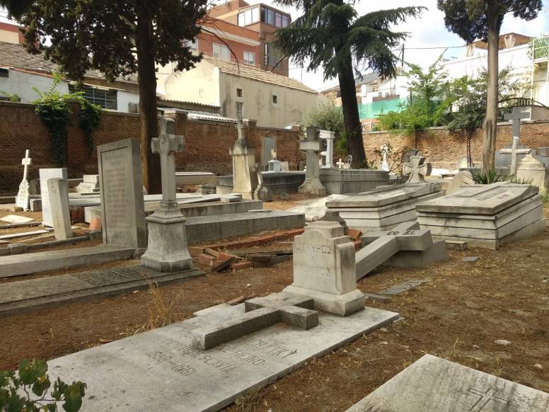 Muy cerca de la calle General Ricardos encontramos una pequeña parcela. Parecería un típico patio inglés de no ser por las tumbas y el abandono que sufre. Este cementerio tiene historia e historias, comenzando por el momento de su construción. Corría el año 1796 cuando la Embaja Británica se percató de la necesidad de encontrar un lugar para poder enterrar los cuerpos de aquellos británicos fallecidos en España. La tradición española prohibía dar cobijo en los cementerios católicos a aquellos que no procesaran el catolicismo. Por ese motivo, la embajada decidió comprar un terreno cerca de lo que hoy en día es la Plaza de Colón pero el gobierno español no permitió la construcción de un cementerio en esa zona, por lo que ofreció un pequeño terreno de menos de una hectarea a las afueras, en Carabanchel.