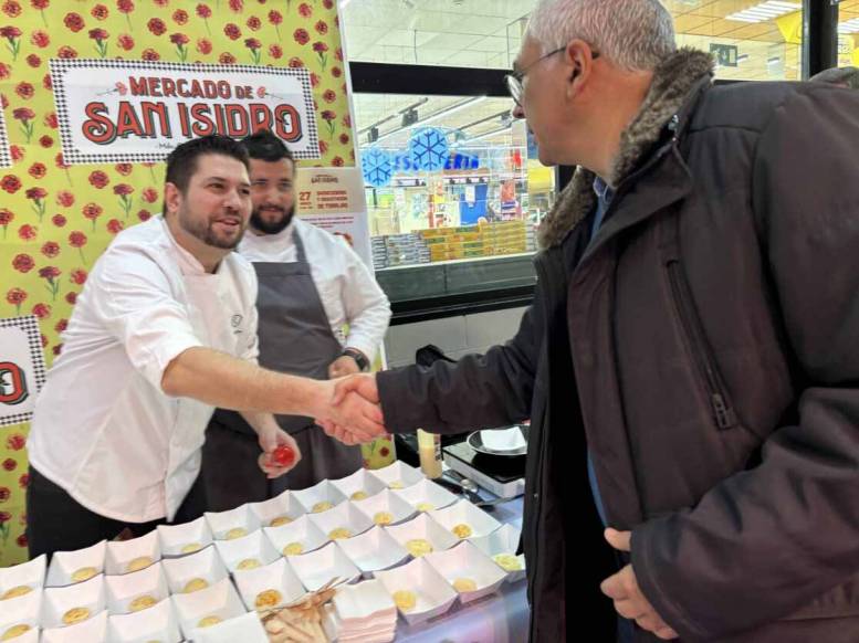 El Ayuntamiento de Madrid ha organizado durante esta Semana Santa varias degustaciones gastronómicas en los mercados municipales en su objetivo de promocionar el comercio de proximidad. Esta mañana, el concejal de Carabanchel, Carlos Izquierdo, ha asistido a ‘Pasiones Dulces. La Ruta de la Torrija’, una demostración culinaria, en la que han participado Gastronomikate y la Cofradía del Queso Manchego, que se ha celebrado en el Mercado Municipal de San Isidro. El chef Ignacio Reyes ha apostado por una torrija elaborada con pan de yuca y queso manchego, mientras que Carlos Sierra se ha decantado por el dulce a base de brioche con leche de coco y queso manchego.