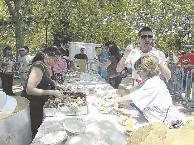 Está tan bueno como pueda estar el de mi casa… Lo hacen con mucho cariño estas mujeres, tienen ya cogido el tranquillo y todo el mundo dice que está muy bueno. La prueba es que todos los años nos falta… Nos ponemos en el parque, donde la Fuente del Trébol, y la cola llega a otra fuente que está a 500 metros. La gente empieza a hacer cola a las nueve, aunque no empezamos a repartirlo hasta la una o así… Siempre nos hemos quedado cortos, pero es que no tenemos capacidad para hacer más…