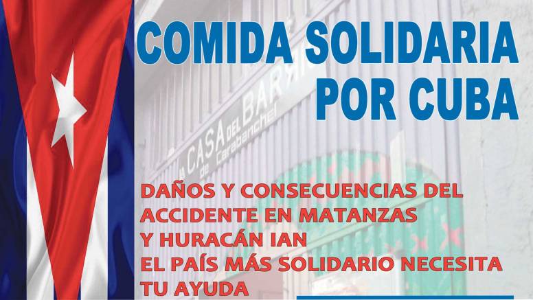 Cuba ha sufrido dos catástrofes en los últimos meses: el incendio de Matanzas y el paso del huracán Ian, que ha provocado numerosos destrozos. Para recaudar fondos destinados a echar una mano a paliar esta difícil situación, el Ateneo Republicano de Carabanchel ha organizado una comida solidaria con el país caribeño, que tendrá lugar el sábado 19 de noviembre a las 13:30 en la Casa del Barrio (Avda. de Carabanchel Alto, 64).