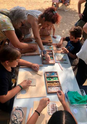 Ecologistas en Acción, E.S.L.A. EKO, la Asociación de Vecinos del Parque Eugenia de Montijo y la Asociación de Antiguos Alumnos del CEPA de Vista Alegre organizaron talleres infantiles que funcionaron durante toda la mañana. Se pintó un cartel alegórico de ovejas en la vía pecuaria; se realizaron mosaicos romanos con teselas de colores; se pintaron ermitas en recortables, y se elaboró un puzle colaborativo que fue pintado pieza a pieza por peques y mayores.