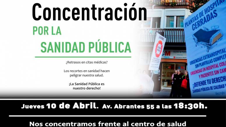Concentración el jueves 10 de abril a las 18:30 ante el Centro de Salud Abrantes y convocatoria de una gran marcha con columnas que confluirán en Cibeles el 25 de mayo