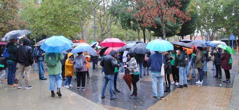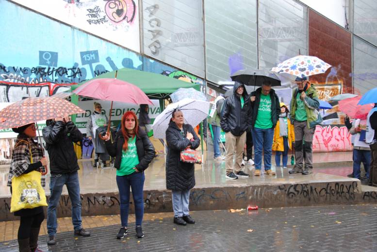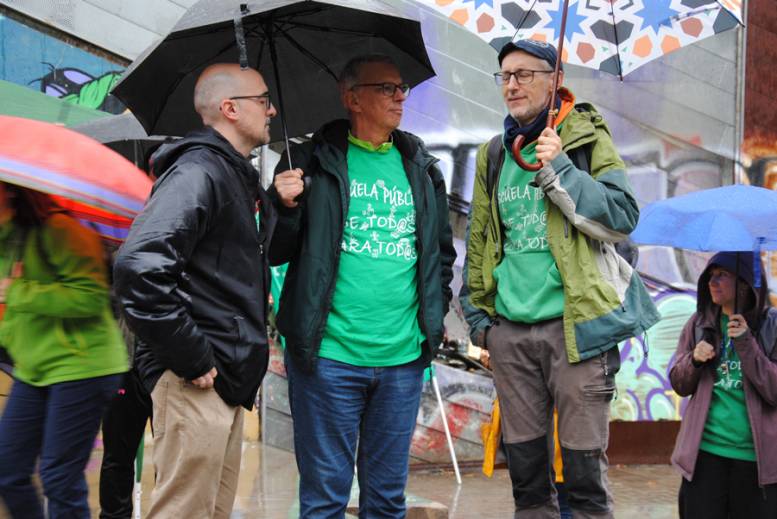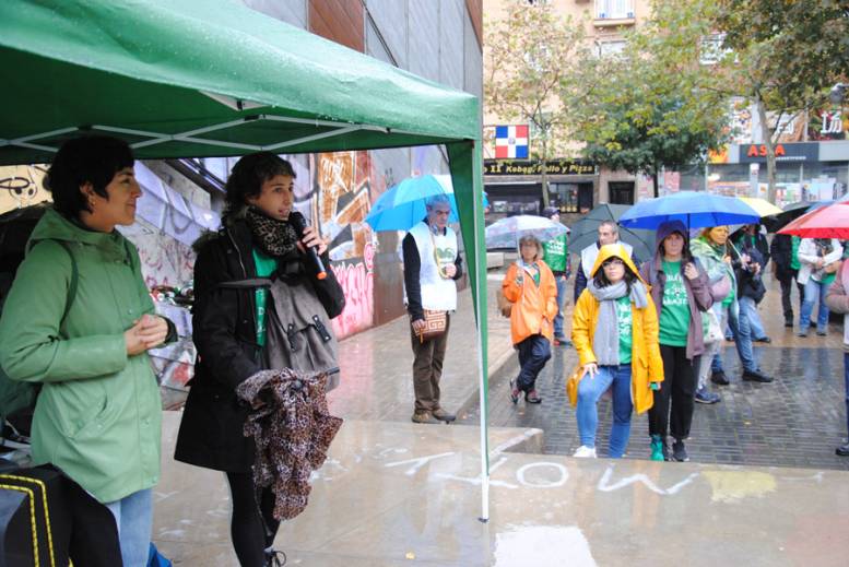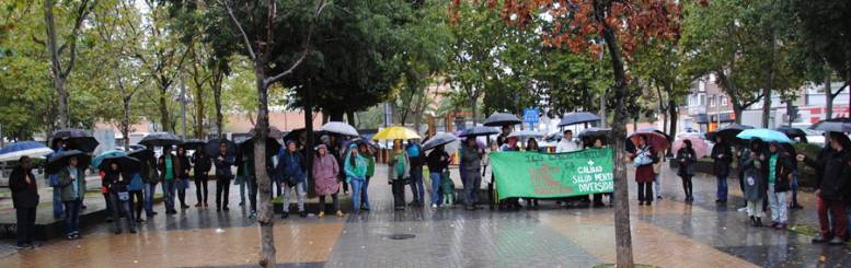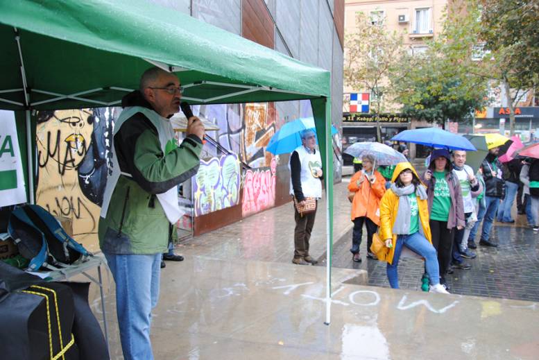 Desafiando a la lluvia, a ratos intensa, las personas allí concentradas, docentes de diferentes centros educativos de la zona, mantuvieron la protesta durante alrededor de una hora. En ella se corearon consignas, se dio lectura a las reivindicaciones y hubo micrófono abierto para que cualquiera de los y las presentes que lo deseara pudiera expresarse. Los convocantes informaron también de que el número de asambleas se ha duplicado, existiendo ya 149 en la Comunidad de Madrid y 16 en Carabanchel. Al cierre del acto de protesta, animaron a todos y todas a participar en la manifestación de la tarde por las calles del centro de la capital.