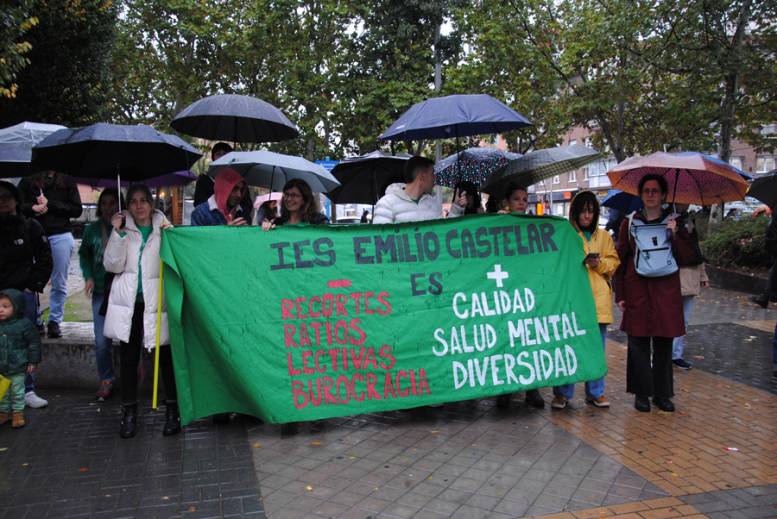 Entre las reivindicaciones de los docentes ocupa un lugar importante la reducción de las horas lectivas a 18 en Secundaria, FP y RE y 23 en Infantil y Primaria (Madrid es la única comunidad que mantiene las 20/25), lo que implicaría la contratación de más personal y la “estabilización del que se encuentra en abuso de temporalidad”. Asimismo, reclaman la equiparación salarial con el resto de comunidades, la reducción de ratios sin supresión de grupos, la reducción de tareas burocráticas, la eliminación de la segregación educativa, la construcción y mantenimiento de centros públicos y la creación de plazas públicas.