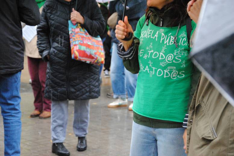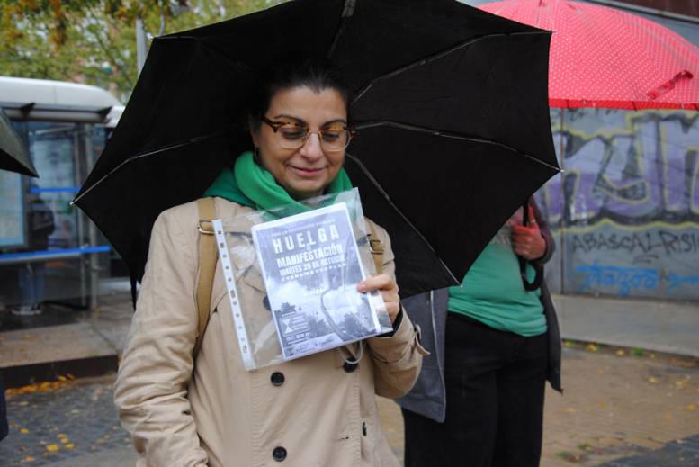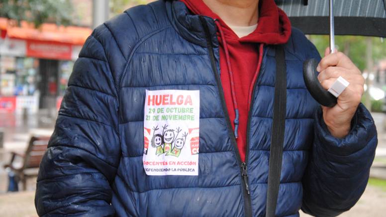 Para ayer, martes 29 de octubre, los sindicatos de la Mesa Sectorial (CC OO, ANPE, CSIF y UGT) habían fijado la primera de dos convocatorias de huelga de docentes de las escuelas públicas de la Comunidad de Madrid en defensa de la educación pública, convocatoria asimismo secundada por la Asamblea Menos Lectivas y el sindicato CGT. Enmarcada dentro de esta jornada de lucha, la Asamblea Menos Lectivas de la zona Carabanchel-Latina convocó una concentración a partir de las once de la mañana de ayer en la plaza de Oporto que reunió a algo más de un centenar de docentes en huelga.