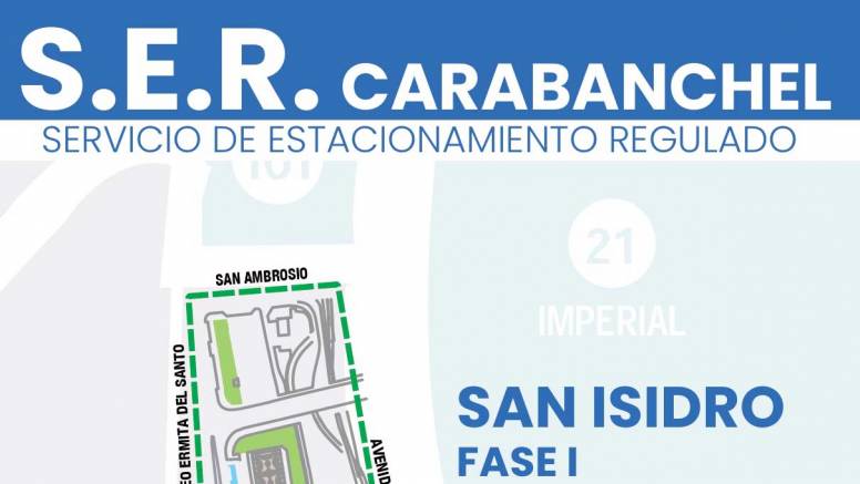 Desde el 25 de septiembre, el Servicio de Estacionamiento Regulado (SER) se ha puesto en funcionamiento en el barrio de San Isidro. El Área de Urbanismo, Medio Ambiente y Movilidad regulará en él ahora 465 plazas de aparcamiento. La puesta en marcha de esta zona regulada atiende a la voluntad del pleno del distrito de Carabanchel, que el pasado 2 de marzo decidió ampliar el SER a una parte de dicho barrio.